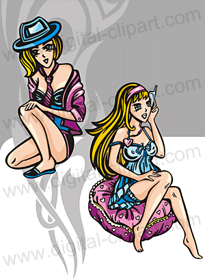Young girls in anime style - the having a rest girls, the having a good time girls playing, singing, dancing, sports.